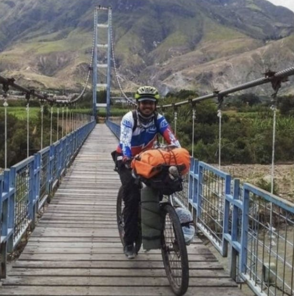 Con 27 años de edad, Carlos es un joven vallartense salió de Puerto Vallarta el 1 de noviembre del 2020 con la firme intención de pedalear hasta el cono sur para reunirse con su novia Agustina, a quien conoció en el 2017 en Málaga, España.
